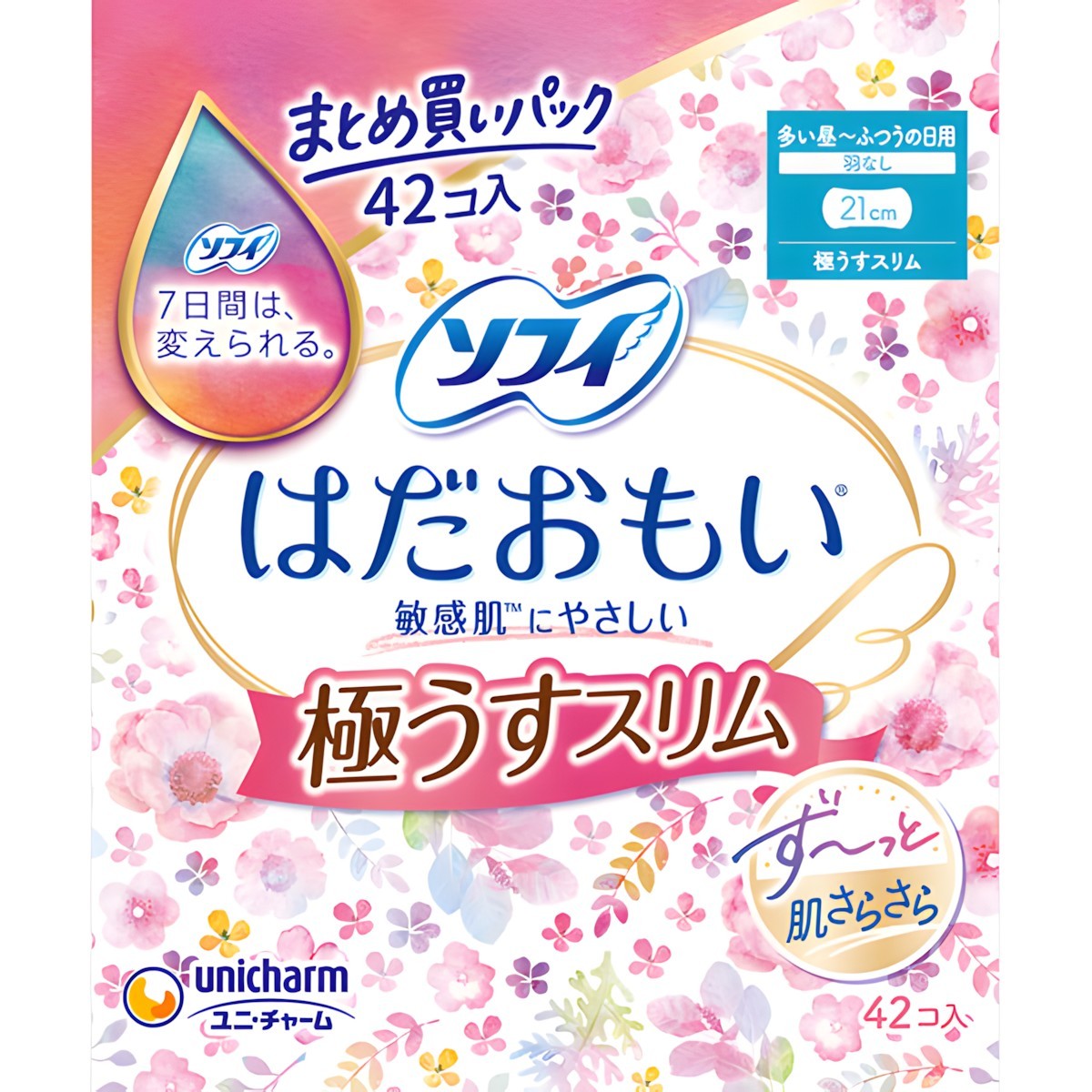 Arifit Hada Omoi Ultra Slim 210mm is the perfect choice for everyday comfort. Ultra-slim with ultra-soft comfort. No-wing design for simple, comfortable wear. Quick-absorbent core for reliable freshness. Individually wrapped for hygiene. Each of the 42 pads is individually wrapped to guarantee hygiene and is designed for easy carrying and daily use.