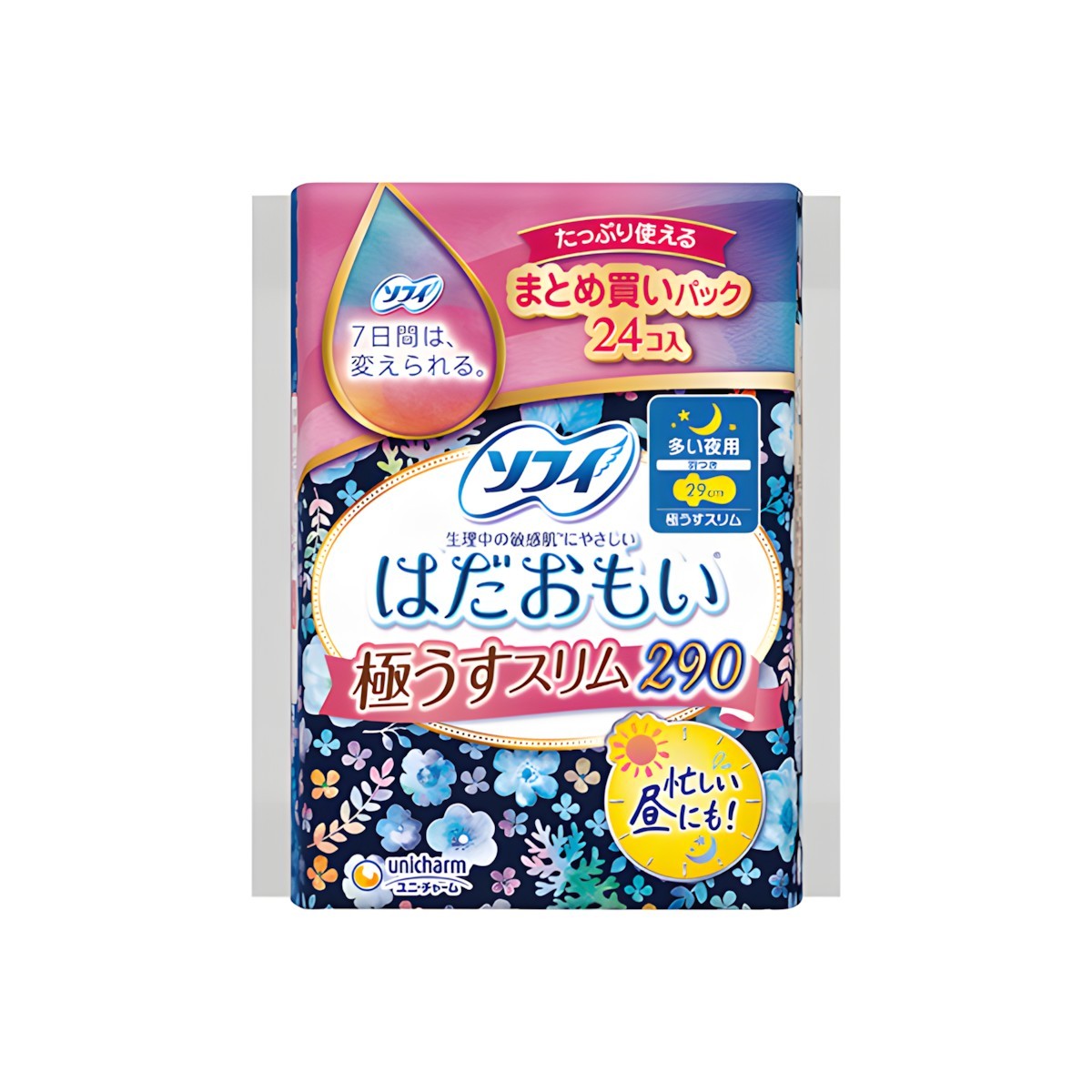Arifit- Hada Omoi Ultra Slim Night Heavy 290 mm – 24 pcs provides ultimate overnight security for heavy flow nights. The 290mm extra-long design features an ultra-slim cottony surface that offers maximum coverage while maintaining a barely-there feel. Specifically engineered for heavy night flow, the wide-back design ensures complete leakage protection in all sleeping positions. Our super absorbent core with 10-hour heavy flow technology delivers superior moisture lock-in, keeping you dry and comfortable throughout the night.