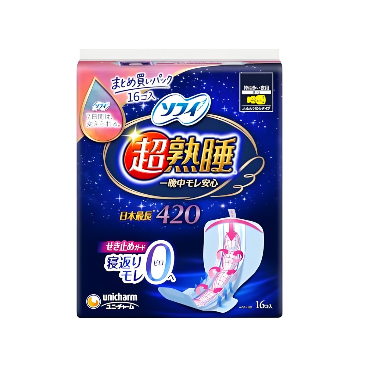 Arifit Super Sleepy Guard Wide 420mm redefines nighttime security. Maximum coverage with wide version design. 420mm extended length with broadened protection area. Extra-high capacity absorption for heaviest flow. Value 16-piece pack for extended heavy flow use. With Arifit Super Sleepy Guard Wide 420mm, experience the next generation of protection and wake up feeling completely secure throughout your heavy flow period.