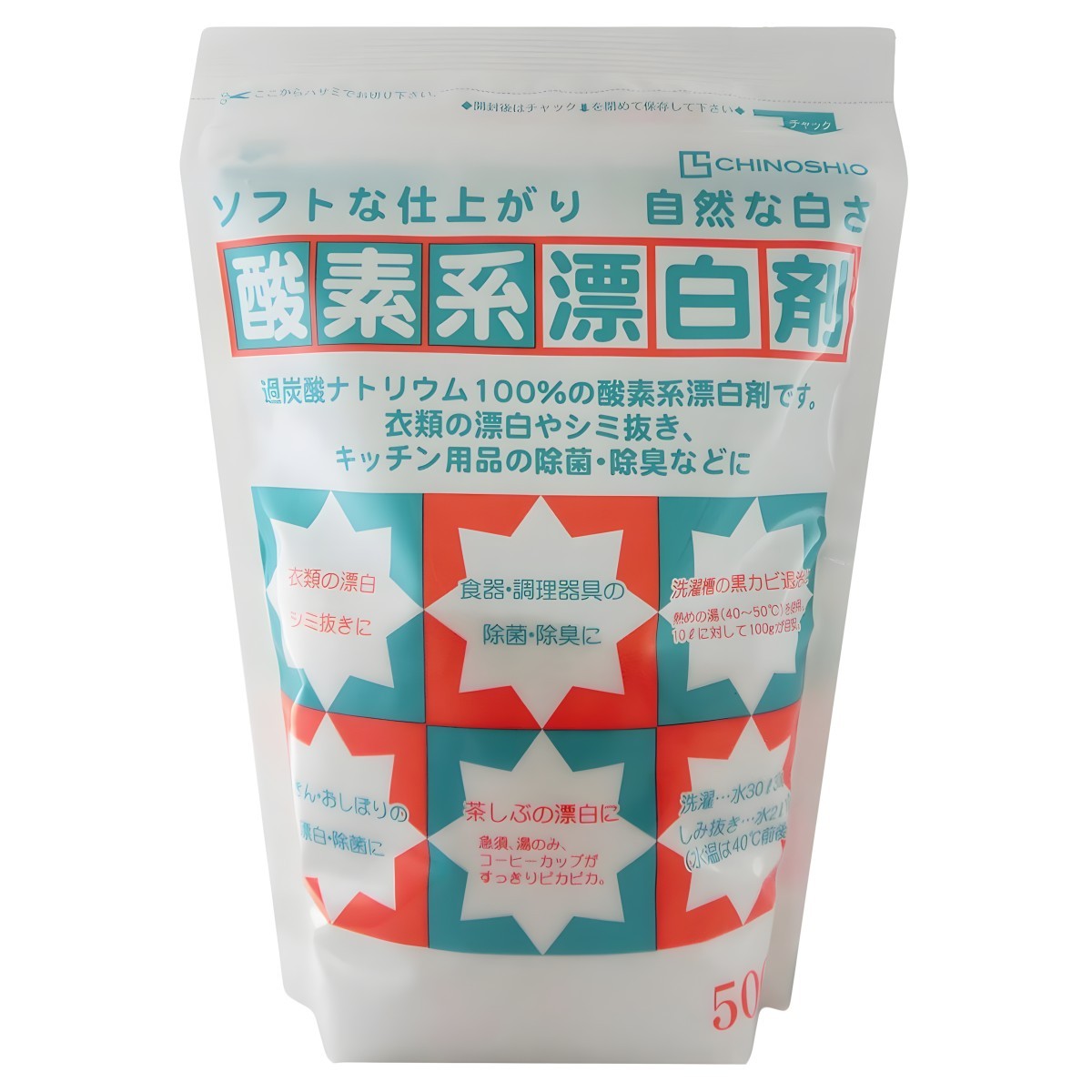 Chinoshiosya Oxygen Bleach combines cleaning power with environmental safety. Oxygen-based stain removal and whitening. Deodorizing and sanitizing properties. Eco-friendly formula. 500G versatile household size. With Chinoshiosya Oxygen Bleach, achieve a brighter, fresher home with the confidence of a safe and thorough clean.