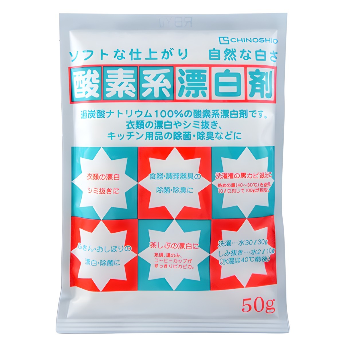 Chinoshiosya Oxygen Bleach combines gentle care with effective cleaning. Oxygen-based stain removal and whitening. Deodorizing and sanitizing properties. Safe for colors and fabrics. 50G convenient trial size. With Chinoshiosya Oxygen Bleach 50G, tackle everyday stains with confidence using a product that’s both powerful and planet-friendly.