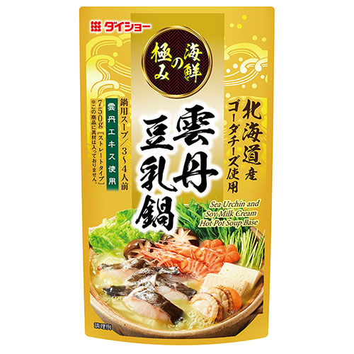 Daisho- Sea Urchin Soy Milk Hot Pot Soup with Hokkaido Gouda Cheese 750g is a standout for fusion hot pot lovers. Sea urchin-soy milk-cheese blend. Hokkaido Gouda cheese. 750g family size. Easy preparation. It lets you enjoy restaurant-worthy luxury hot pot at home effortlessly.