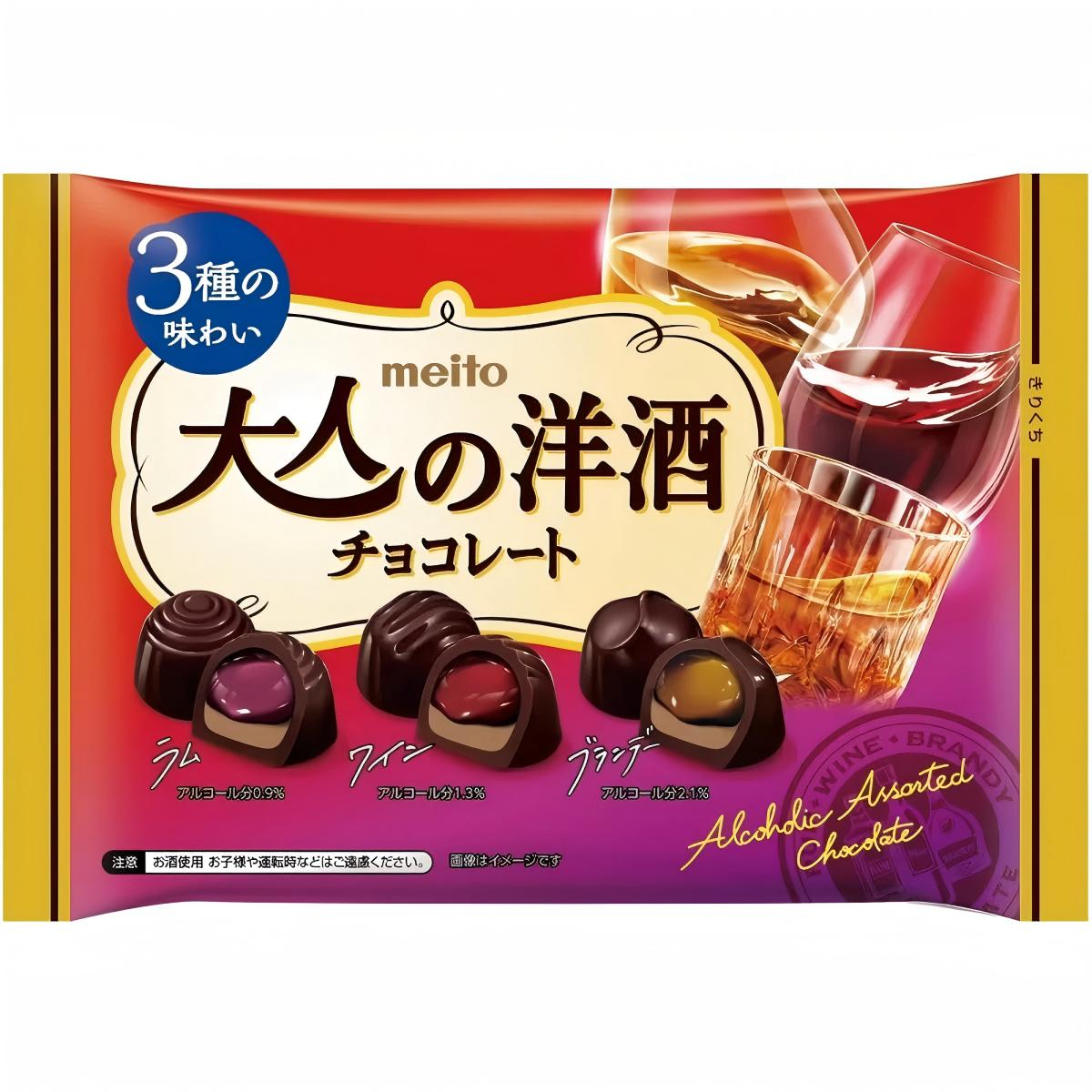 Meito Sangyo Adult Liquor Chocolate brings elegance to mature palates. Premium liquor infusion. Specially crafted for adults. Elegant 96g packaging. Sophisticated flavor profile. With Meito Sangyo Adult Liquor Chocolate, you can enjoy a refined tasting experience that celebrates the marriage of premium spirits and fine chocolate, creating moments of pure adult indulgence.