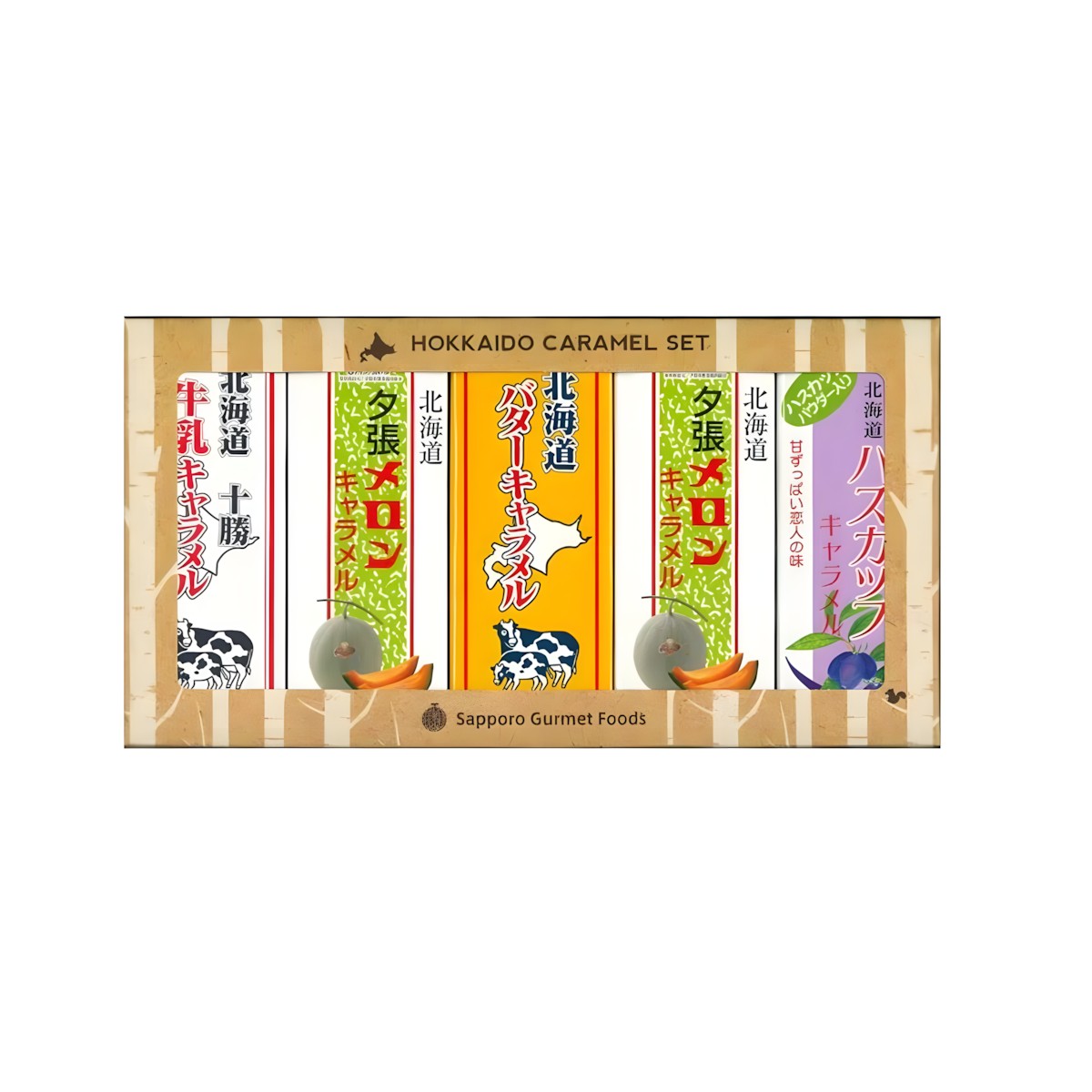 Sapporo Gourmet Foods- Hokkaido Caramel Assortment presents a curated collection of five premium caramel varieties in an exquisite 360g gift set. This luxurious assortment showcases the diverse flavors of Hokkaido, featuring carefully selected caramels that represent the region’s finest ingredients – from rich dairy butters to distinctive local fruits. Each variety offers a unique texture and flavor profile, creating a comprehensive tasting journey through Hokkaido’s culinary landscape in one elegant package.